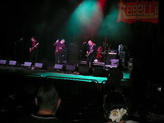 Aunque no los vi enteros por no conocerlos a fondo, algo quise ver de otra banda que aprovechaban el Rebellion para volver a juntarse otra vez. Me estoy refiriendo a los The Wall, que fueron otro grupo que tuvieron cierto éxito en los años 80 pero cuyo sonido también estaba más cercano al 77 que al de la mayoría de sus colegas de década. Aunque no los conozco lo suficiente, he oído cosas de ellos que están muy bien, y de hecho, creo que aunque tuvieron una vida bastante efímera, llegaron a editar cosas incluso con una multinacional. Lo que estaba claro es que la gente los conocía y les tenían muchas ganas, pues aunque The Wall actuó en el teatro de asientos, con su concierto muchísimo público dejó las butacas y se pusieron a pegar botes entre el hueco que había entre el escenario y los asientos. El rato que los vi estuvieron sumamente interesantes. Vamos con Mario.