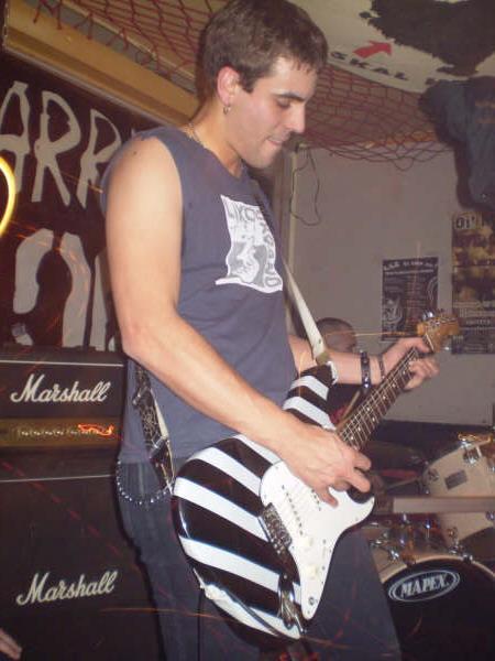 M. Lo de Vómito estuvo de puta madre, lástima que al final no pudimos tocar por un problema personal grave de uno de nosotros (hecho este que nos persigue). Por otra parte, su guitarra Mikel se jodió un pie y tuvo que tocar con un pie en zapatillas de andar por casa, y sentado en una banqueta. Al final el público coreando “mi pantufla es un arma de destrucción” y el tío descojonao… muy grande.